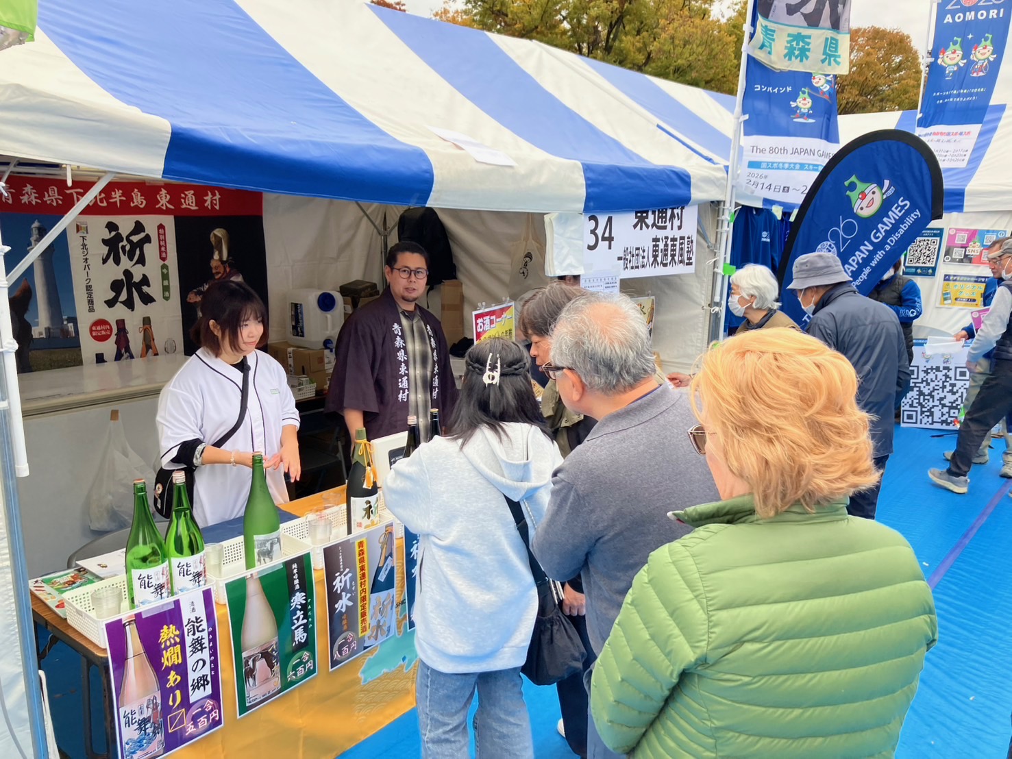 11月8日(土)~9日(日)、東京都の上野恩賜公園・噴水広場にて、東京青森県人会主催の「2025青森人の祭典」が開催され、当社も東通村のブースのお手伝いをしました。