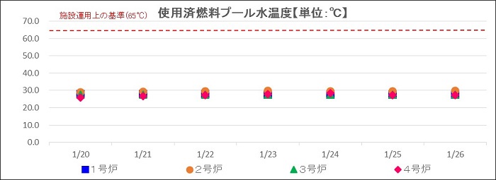 福島第二原子力発電所 各号炉の使用済燃料プール水温度について、お知らせいたします。