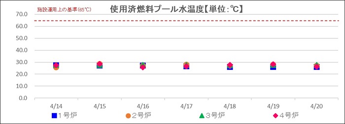 至近の使用済燃料プール水温度(2026年4月14日~2026年4月20日)