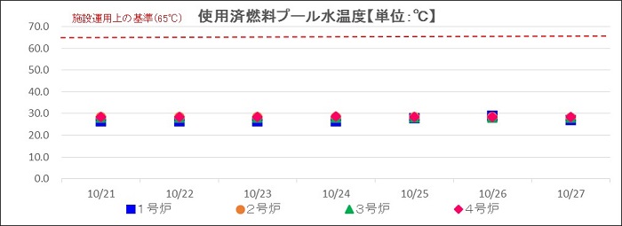 至近の使用済燃料プール水温度(2025年10月21日~2025年10月27日) ※温度上昇確認中は平日のみ更新(状況に応じて都度更新)