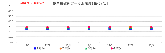至近の使用済燃料プール水温度(2025年12月2日~2025年12月8日) ※温度上昇確認中は平日のみ更新(状況に応じて都度更新)