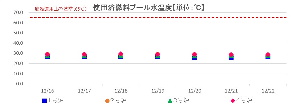 至近の使用済燃料プール水温度(2025年12月16日~2025年12月22日) ※温度上昇確認中は平日のみ更新(状況に応じて都度更新)