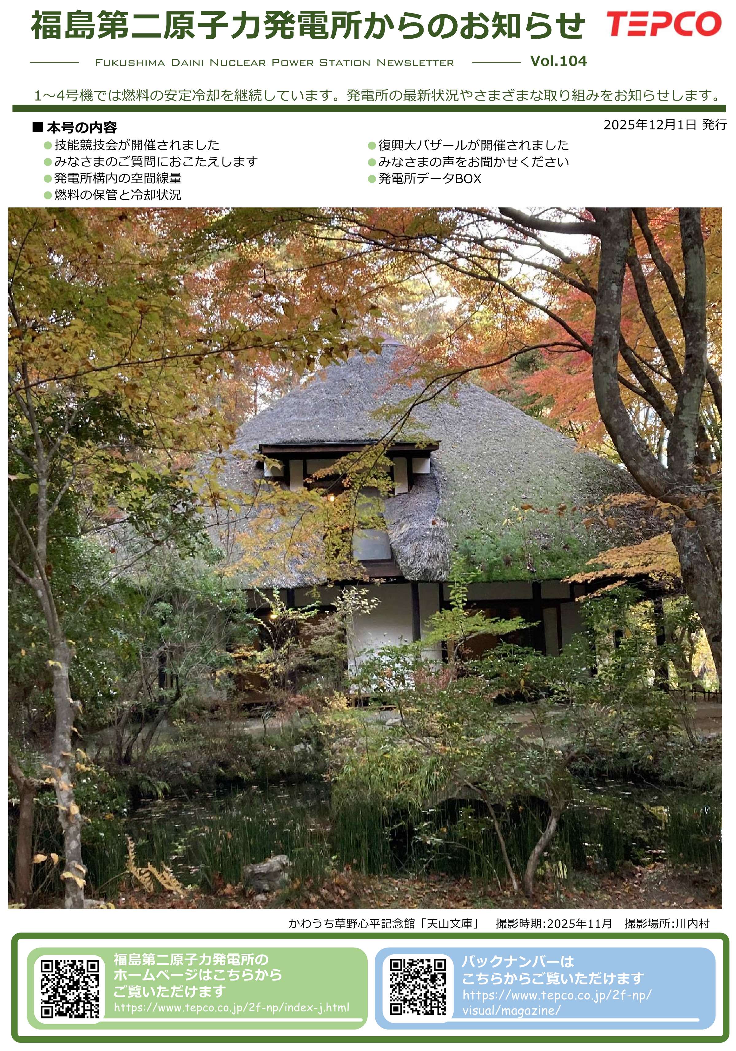 ●発電所長の交代について ●発電所の仲間をご紹介します ●発電所構内の空間線量 ●燃料の保管と冷却状況 ●常磐線が9年ぶりに全線運転再開しました ●皆さまの声をお聞かせください ●発電所データBOX