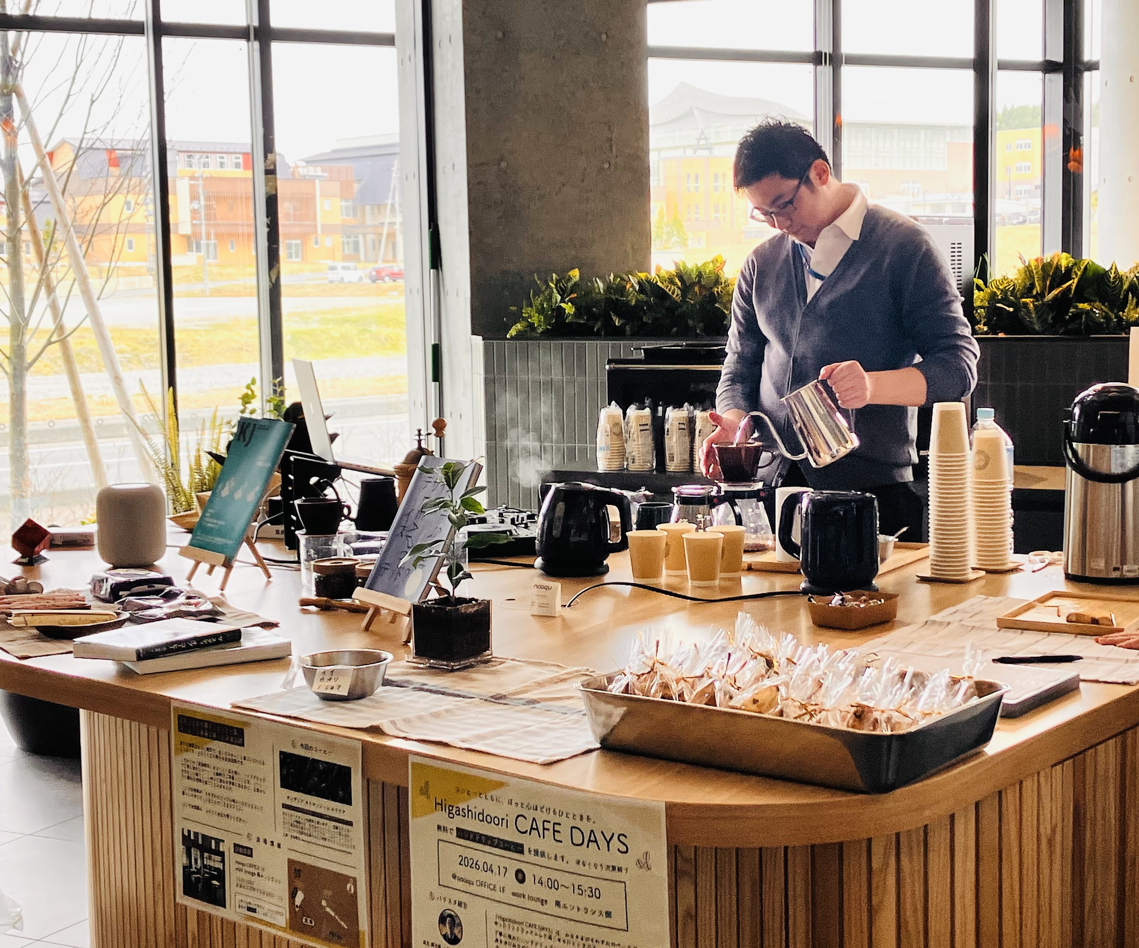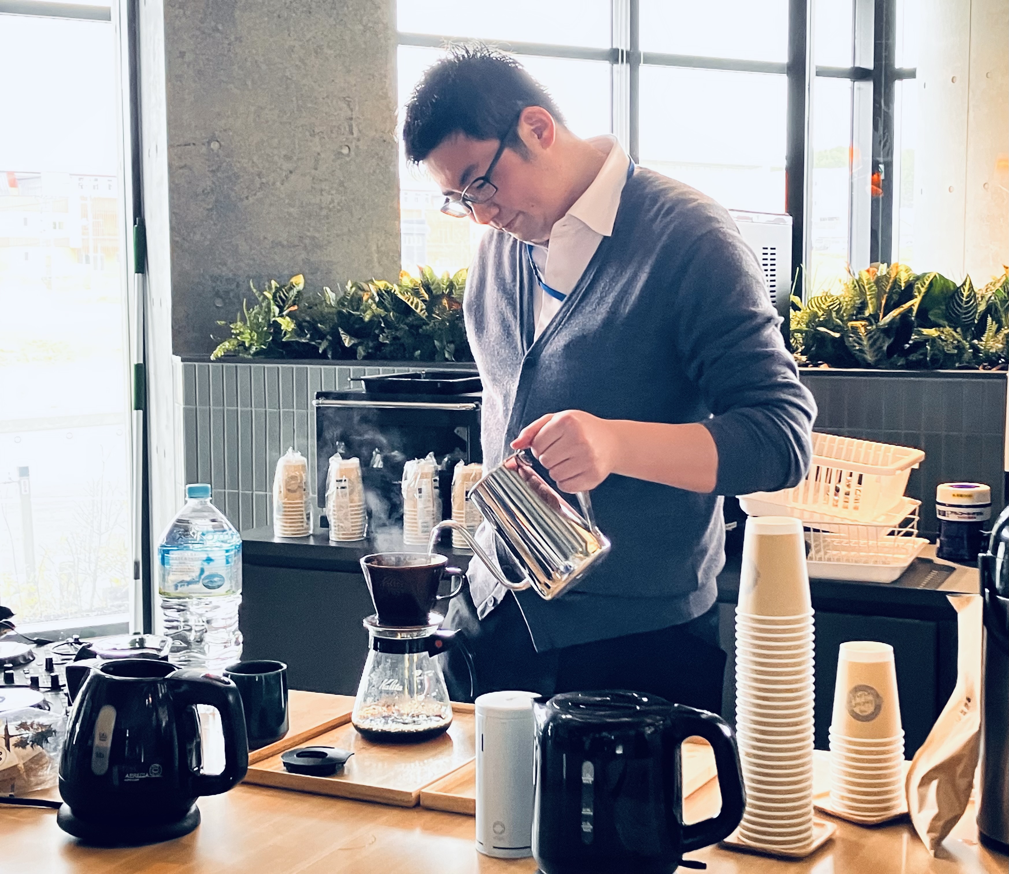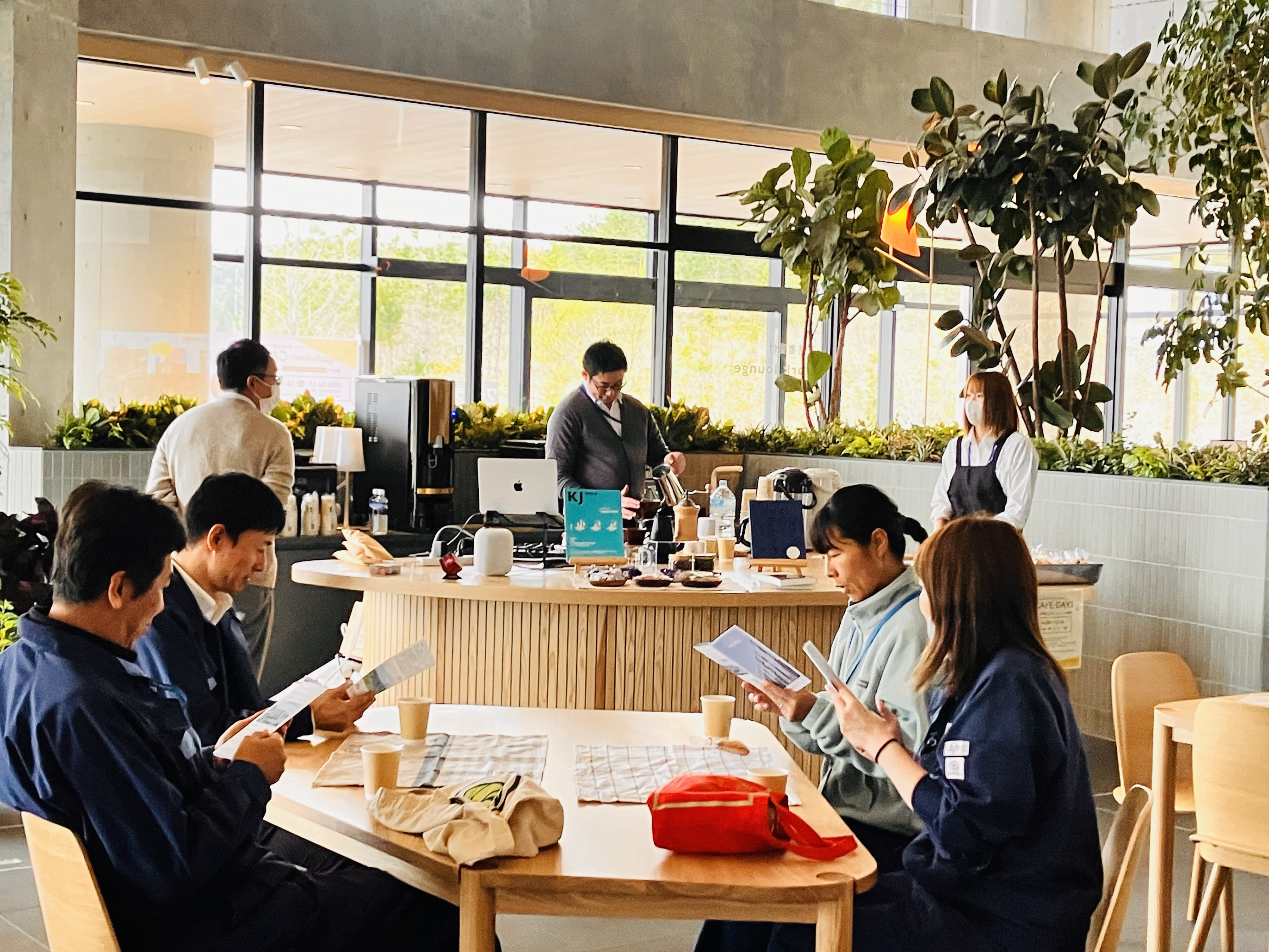 4/17(金)ノークオフィス1Fのワークラウンジで開催されたコーヒーイベント。