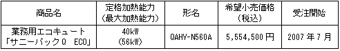 40kW級の業務用エコキュート「サニーパックQ ECO」を共同開発しました。本商品