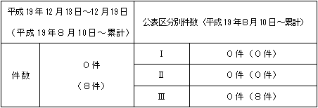 ついて」にもとづく、平成19年12月13日から12月19日までのトラブル情報の発生