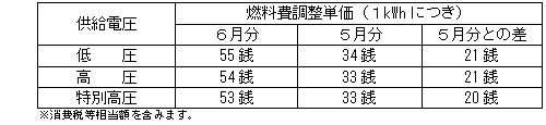 本日、平成24年1~3月の燃料価格(原油、LNG、石炭の貿易統計価格)が公表されたことに伴い、平成24年6月分の電気料金における燃料費調整単価が下記のとおり確定いたしました。