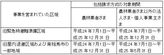 ※特定避難勧奨地点における包括請求方式につきましては、平成24年7月24日付当社公表の「避難指示区域の見直しに伴う賠償の実施(避難指示区域内)」に準じたお取扱いとさせていただきます。
