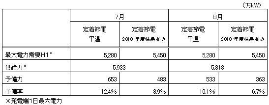 トップページ > リリース・お知らせ一覧 > プレスリリース > 2013年 > 今夏の電力需給に関する情報の経済産業省への報告について