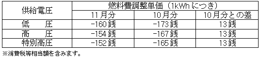 トップページ > リリース・お知らせ一覧 > プレスリリース > 2015年 > 2015年11月分電気料金の燃料費調整について