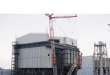 1号機側の高台から南方向に、手前から1、2、3、4号機を撮影しています。