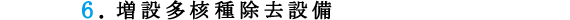 する放射性物質に応じた吸着材で残りの放射性物質を取り除きます。新聞報道などでは、「Advanced Liquid Processing System」を略して「ALPS」と表記されています。 6.増設多核種除去設備(増設ALPS)