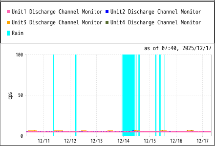 The monitoring data of the discharge channel may temporarily rise due to the fall of radioactive materials (such as Radon daughter nuclides) which exists in nature, to the ground with rain, pouring into the discharge channel.