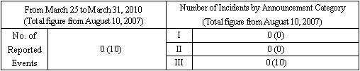 ◇ Incidents Information (relating to the Chuetsu-Oki Earthquake)