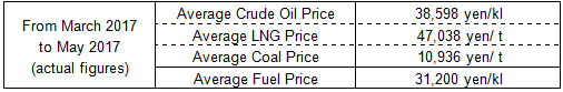 In response to today's publication of the fuel prices for March 2017 to May 2017 (trade statistics prices of crude oil, LNG, and coal), the fuel cost adjustment unit prices in the electricity rates for August 2017 have been fixed as follows.