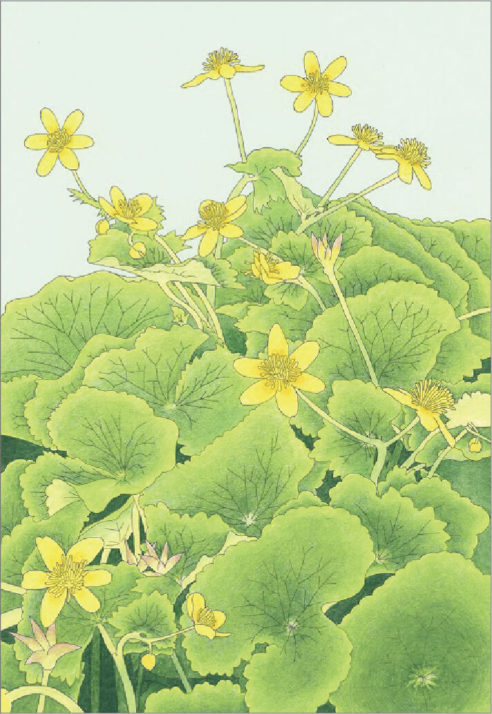 Tetsutaro Goso expressed the four seasons and a flower of changing Oze by an illustration.