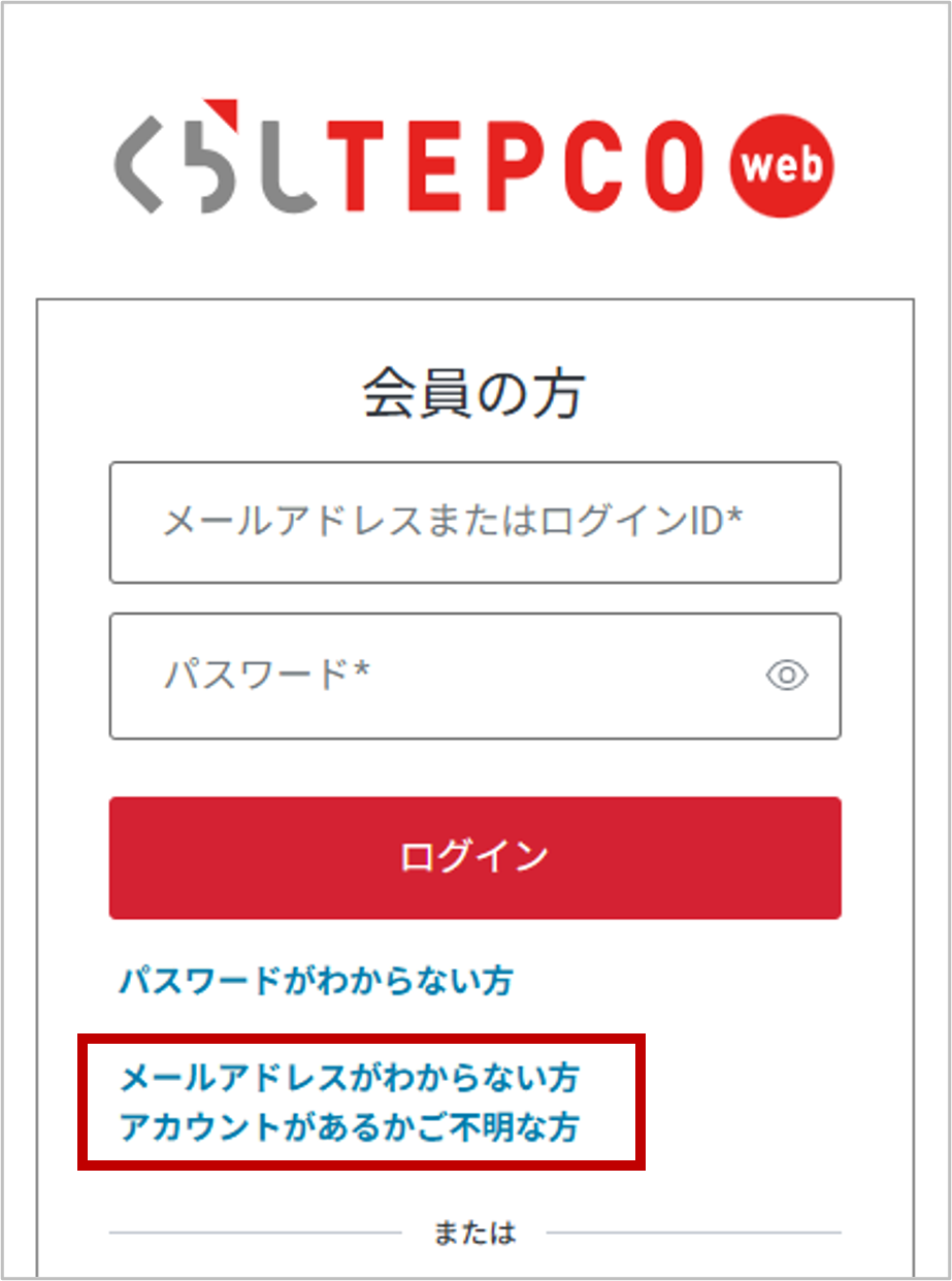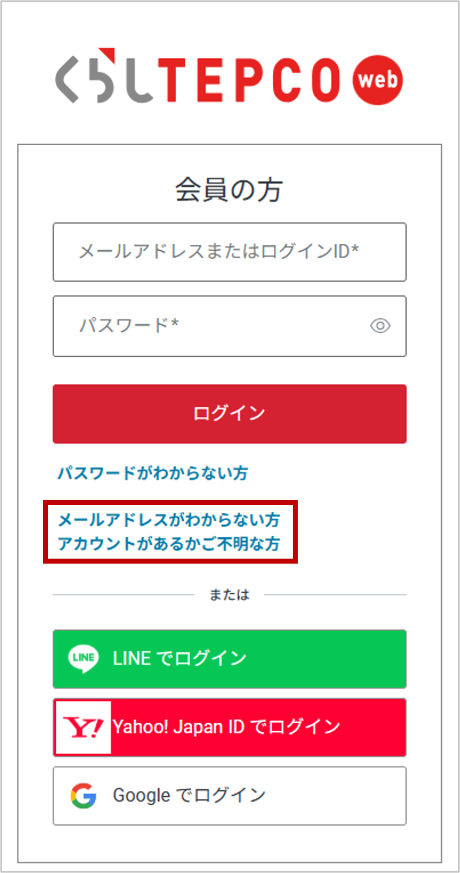 くらしTEPCO webにご登録されたメールアドレスでもログインが可能です。
