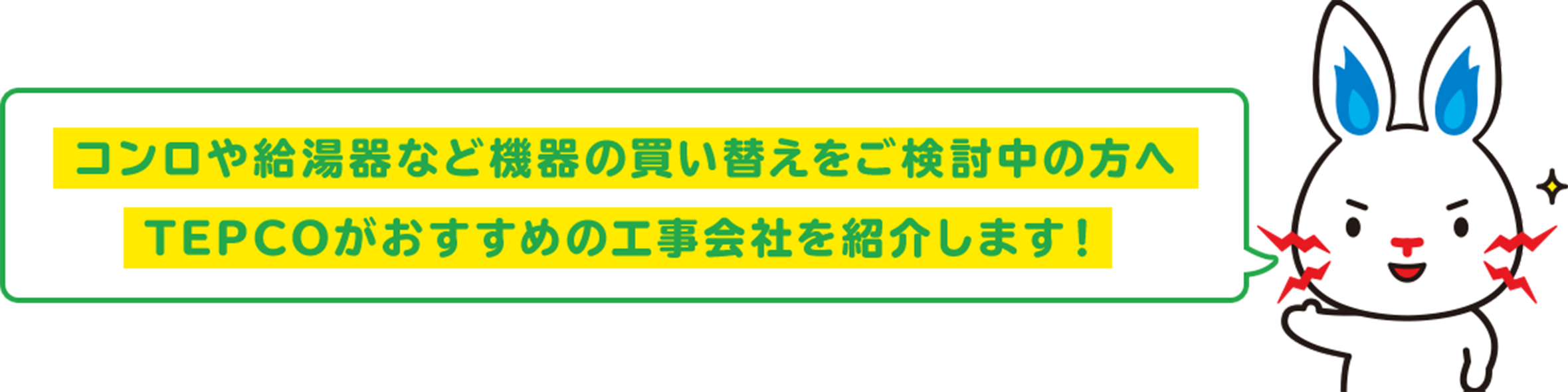 サービス利用にかかる概算金額につきましては、ご依頼いただいた後、当社提携先工事会社よりご案内いたします。 - Q3.東京電力エナジーパートナーと契約(電気・ガス)をしていないが、サービス利用は可能ですか?
