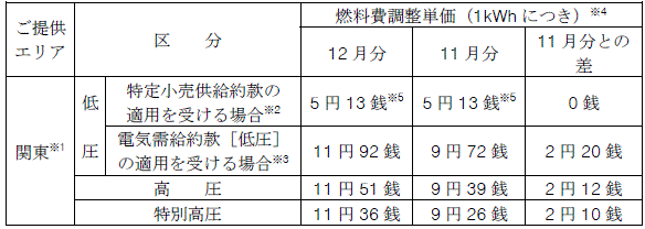 本日、2022年7月~2022年9月の燃料価格(原油、LNG、石炭の貿易統計価格)が公表されたことにともない、2022年12月分の電気料金における燃料費調整単価が下記のとおり確定いたしました。