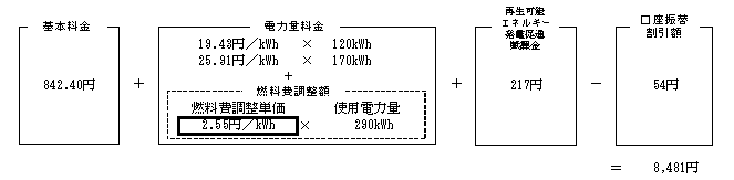 平成27年2月分の電気料金の燃料費調整単価は、以下のとおりです。
