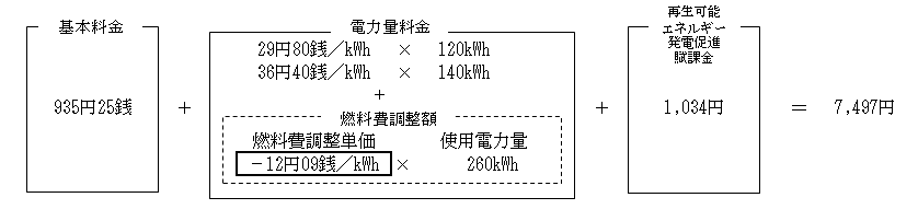 平均モデル:従量電灯B・30A契約、使用電力量:260kWhのお客さまの場合