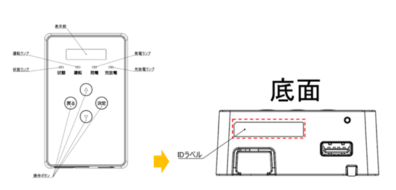 申込み画面で入力が必要な「蓄電システムのゲートウェイの製造番号」「機器の蓄電ゲートウェイID」は、以下、蓄電システム用ゲートウェイの底面のIDラベルよりご確認ください。「遠隔モニタリングユーザーID」が不明な場合は下記の機器に関するお問い合わせまでご連絡ください。