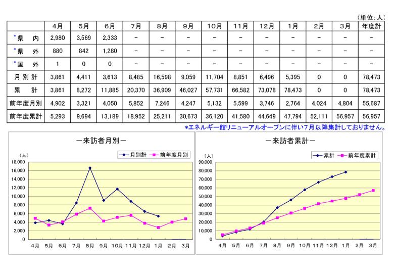 ■来訪者状況(下表)  ■月別(グラフ)  ■累計(グラフ)