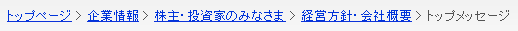 現在ご覧いただいているページ位置(階層)が表示されています。ページの現在地を確認したり、上の階層のページに直接戻りたいときなどに便利です。