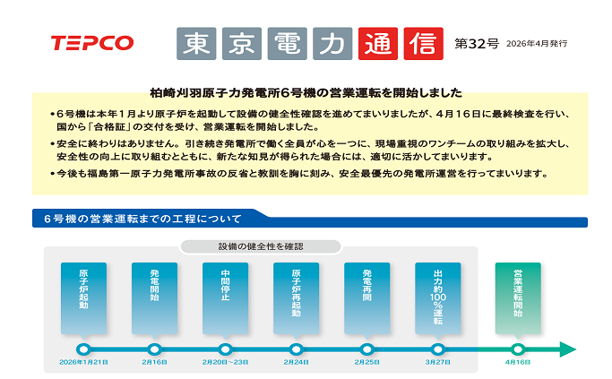 柏崎刈羽原子力発電所6号機などに関する最新情報をお伝えします