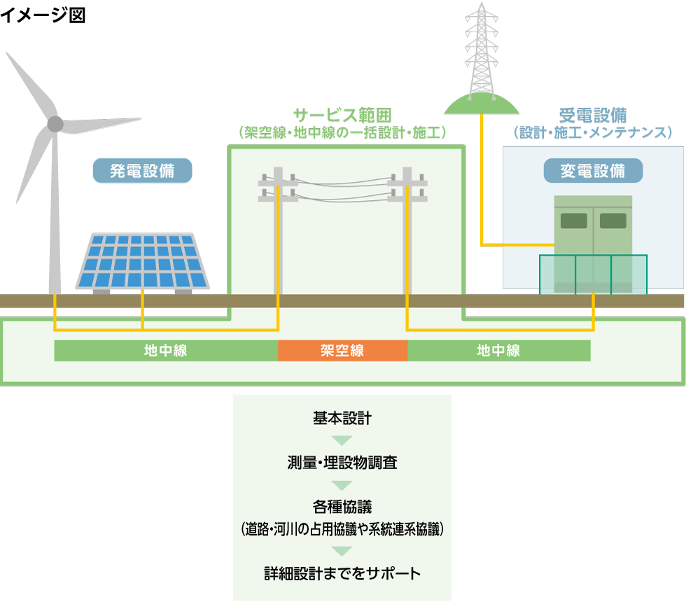 「電気設備と再生可能エネルギーの自営線設計および施工」をご提案いたします。
