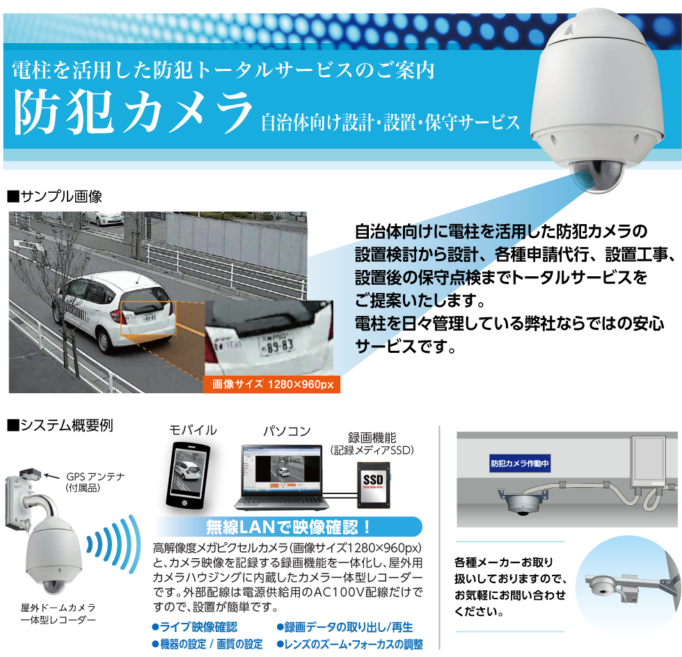 - 防犯カメラ設置に伴う電柱への取り付けに関する手続きをワンストップで任せたい