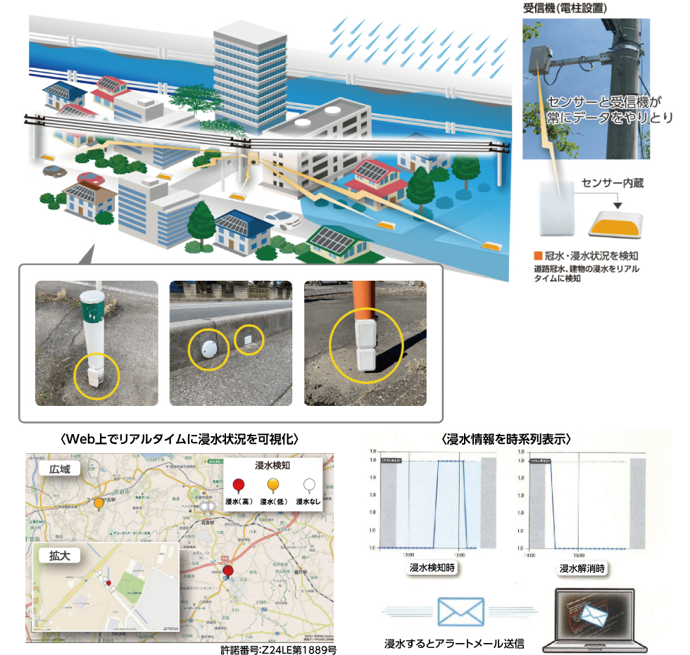 台風や集中豪雨の影響により多発する水害対策に、冠水・浸水情報を