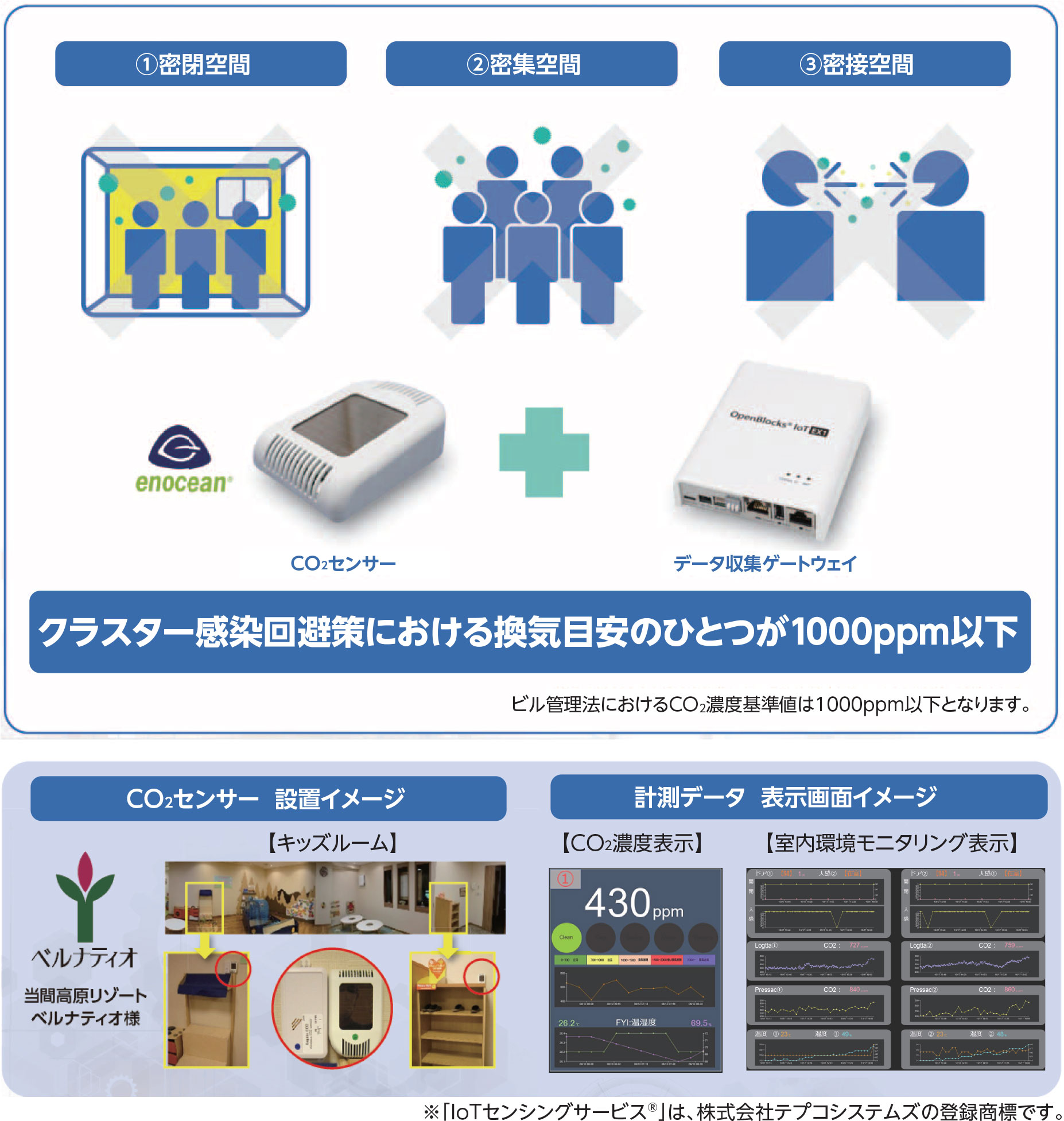 密閉空間・密集空間・密接空間の3密回避策としてCO₂濃度を見える化いたします