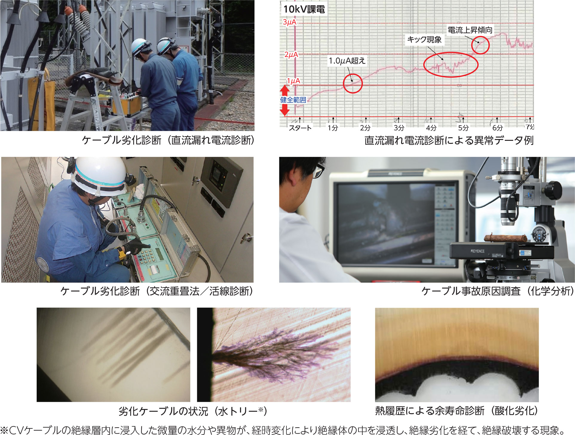 - ケーブル事故の原因を中立的な立場で電気的・化学的の両面から解明します。