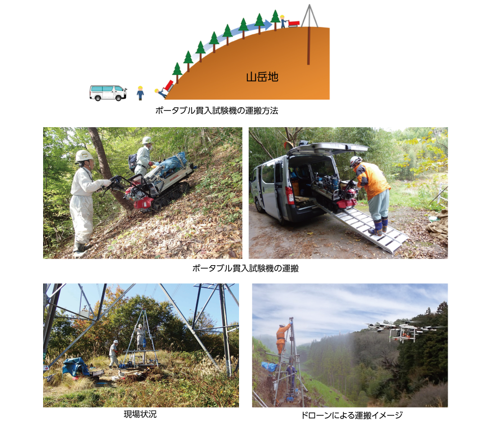 小型クローラで運搬可能な「ポータブル貫入試験機」による、