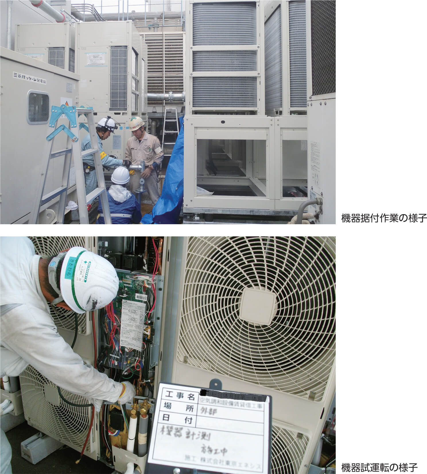 - 新宿駅東口駅前の立地で大型クレーンでの吊り上げ搬入が困難でしたが、分割できる空冷ヒートポンプチラーを提案いただき採用いたしました。
