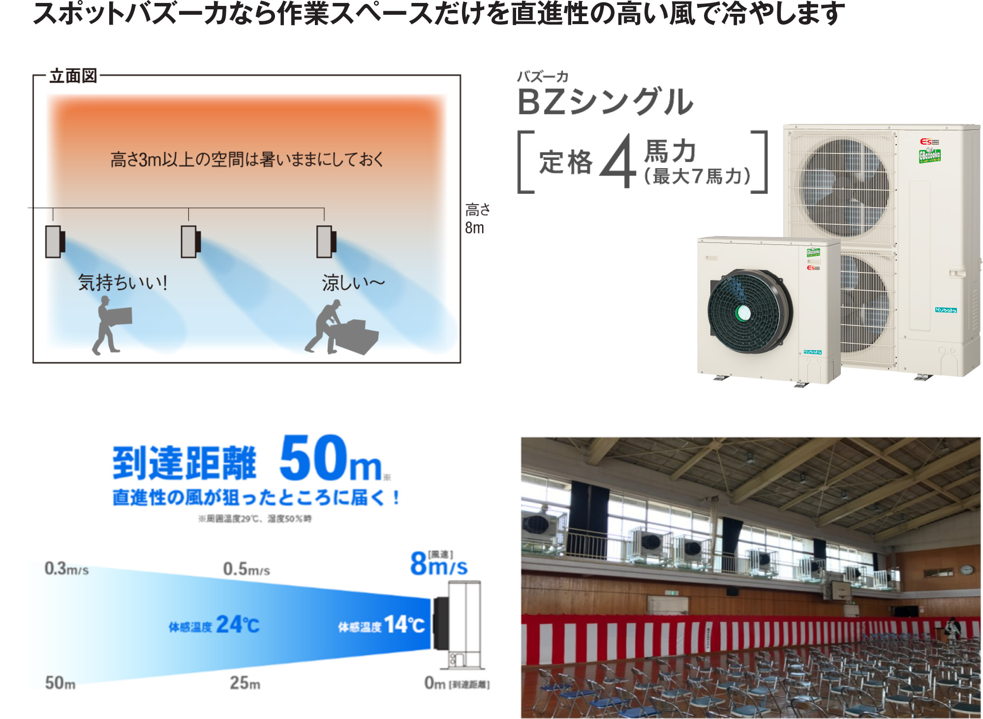 スポットバズーカで作業、運動する空間を効率よく狙い撃ち!