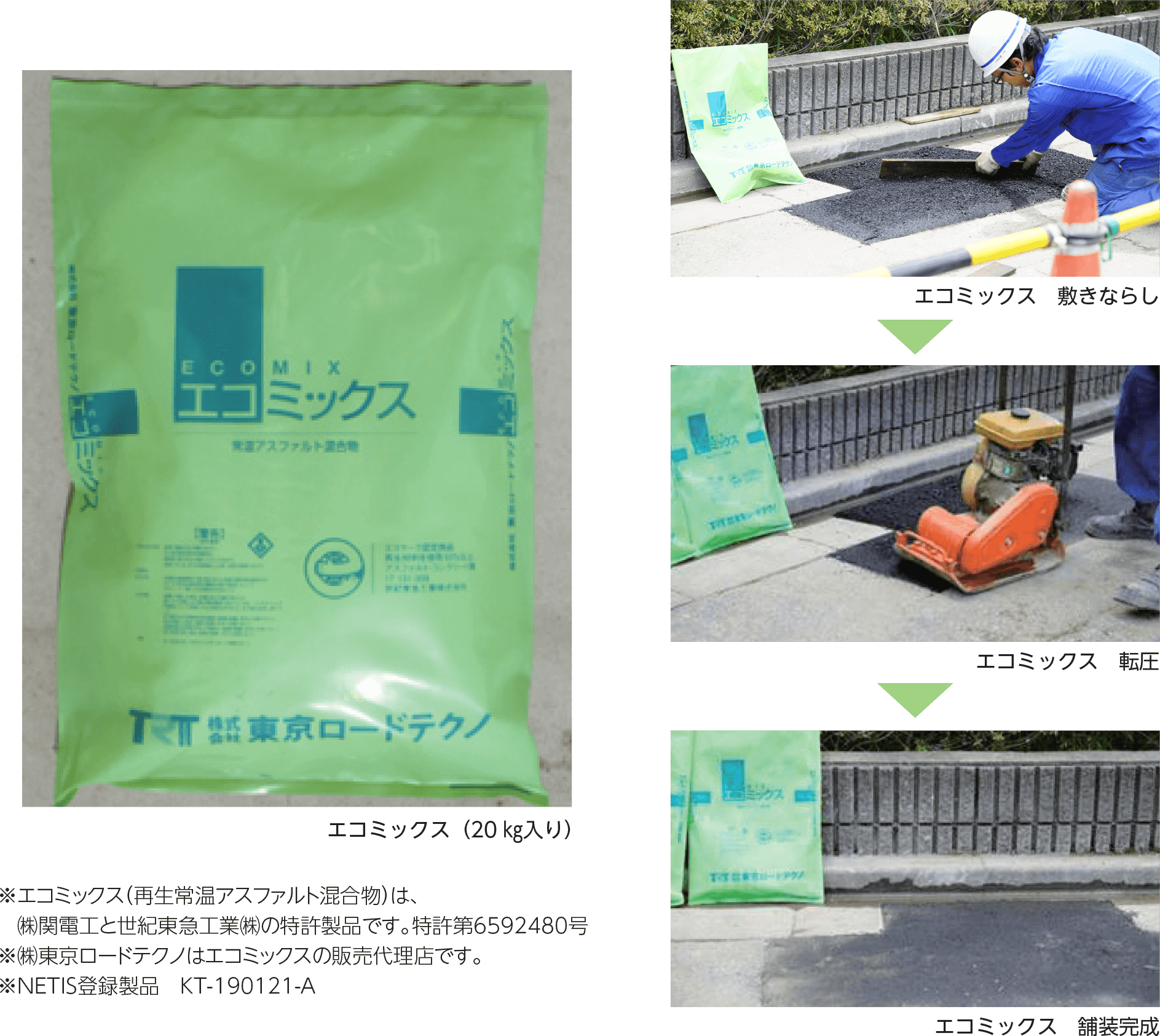 環境に優しい道路補修材料「エコミックス」をご提案いたします。