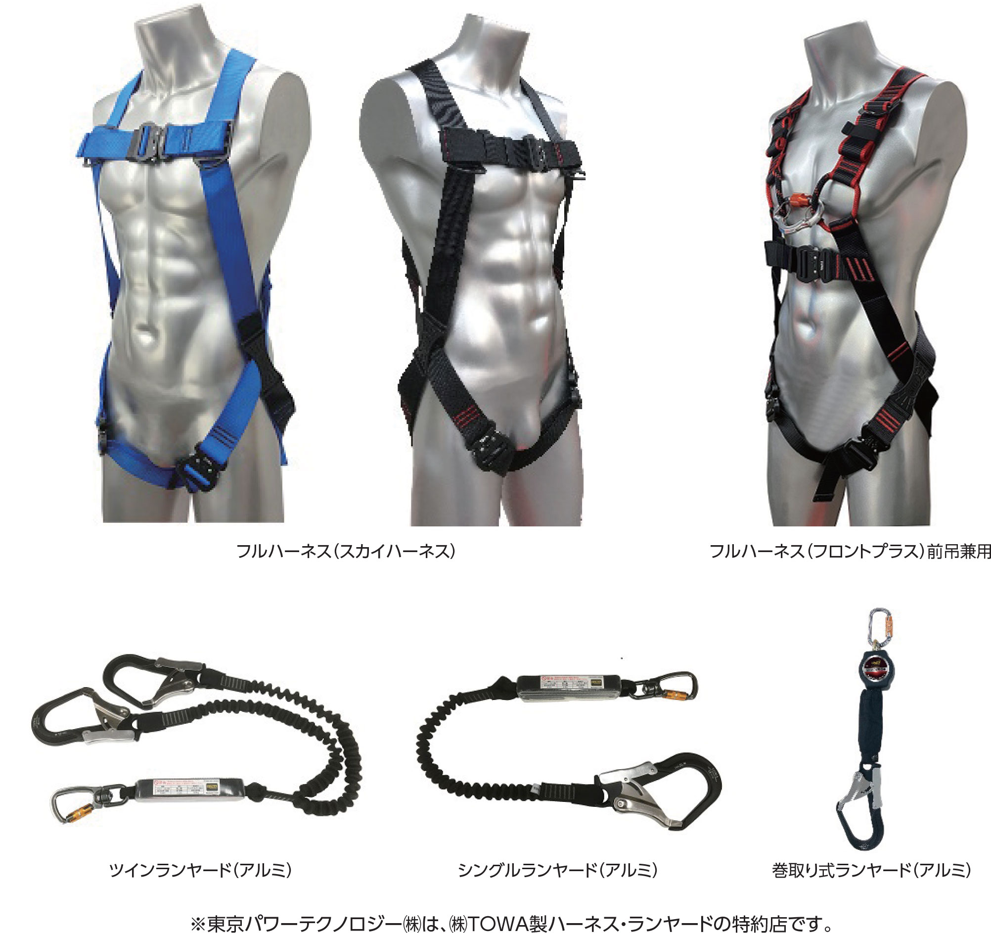 TOWA製のフルハーネスとランヤードをご提案いたします。