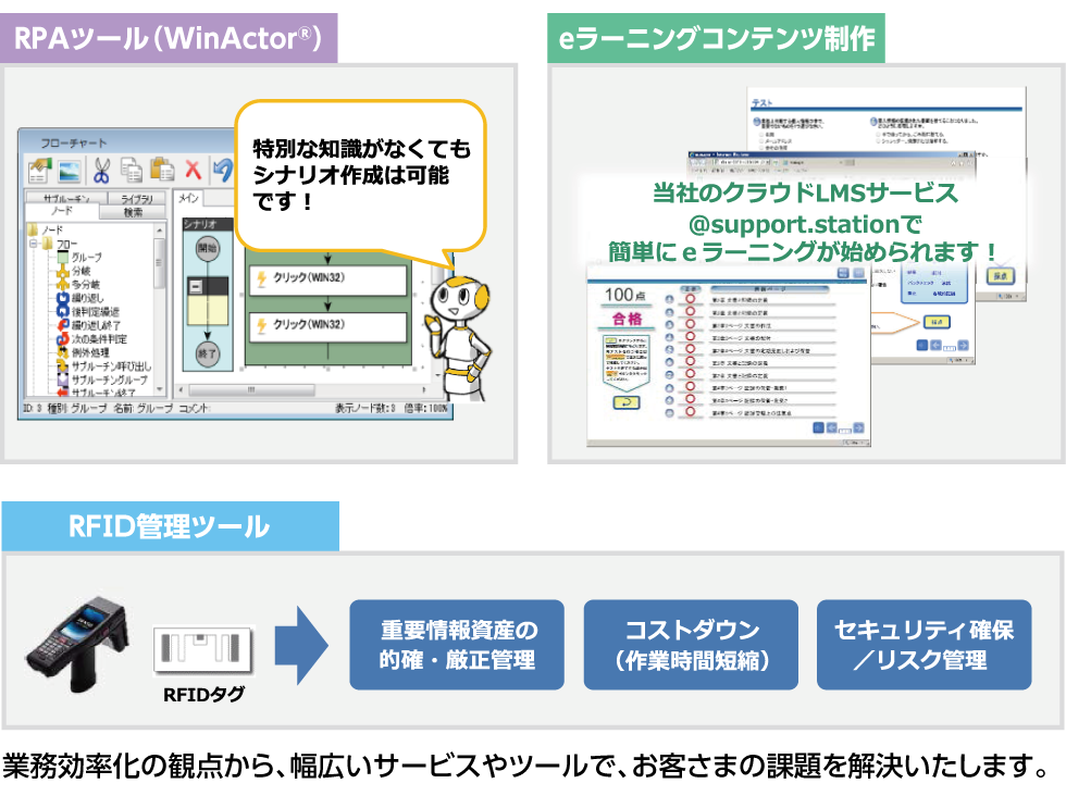 最適な事務処理の自動化・eラーニングや業務効率化支援サービスをご提案いたします。