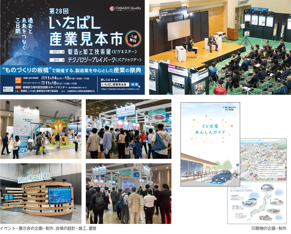 - 各種印刷物をはじめ、展示会やイベントにおける企画提案・制作・運営を通して、お客さまに合ったコミュニケーションツールをご提案いたします。