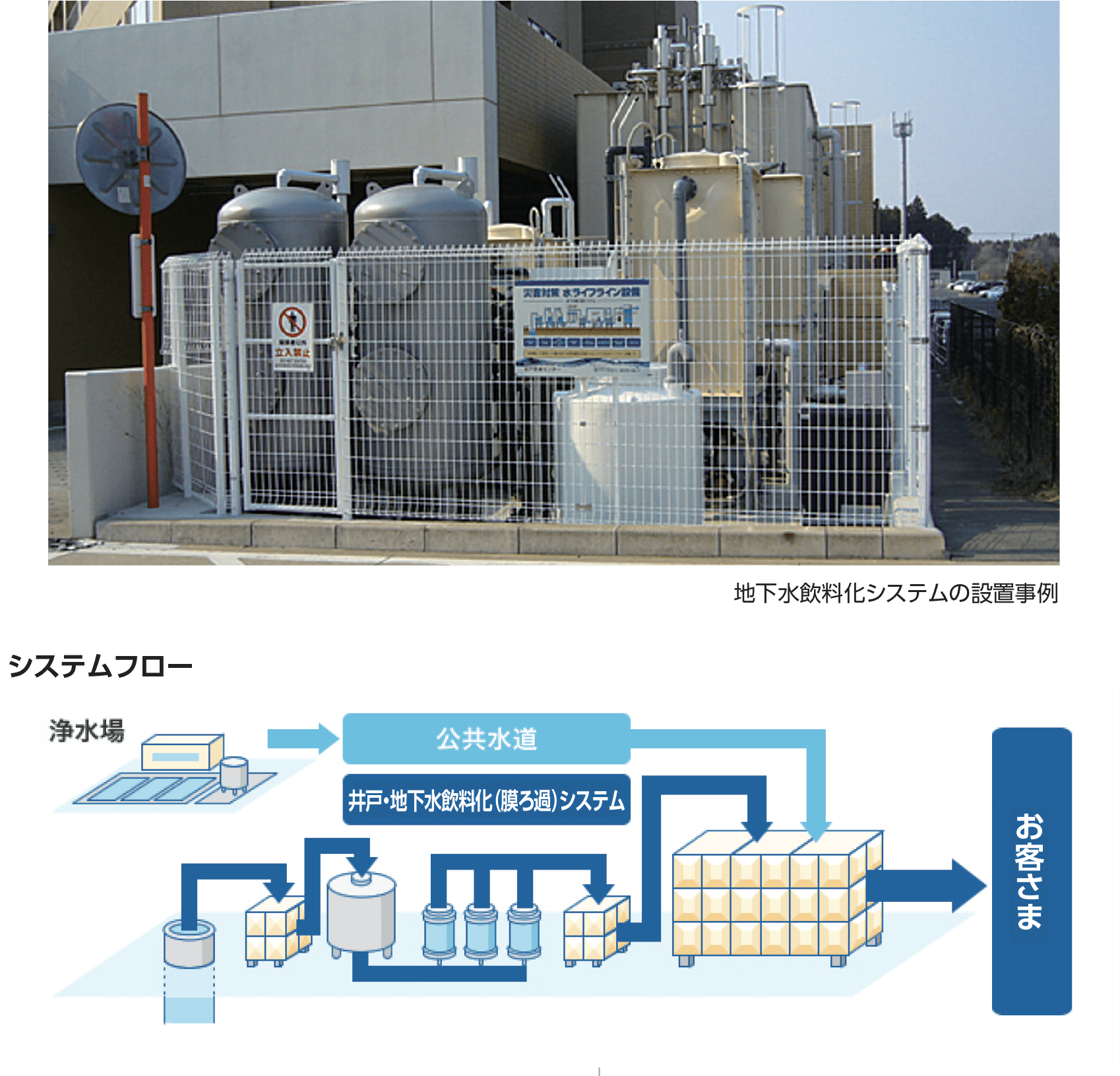 ライフラインの二元確保により、災害時にも水を止めることのできない施設に飲用可能な水の供給が可能です。 -