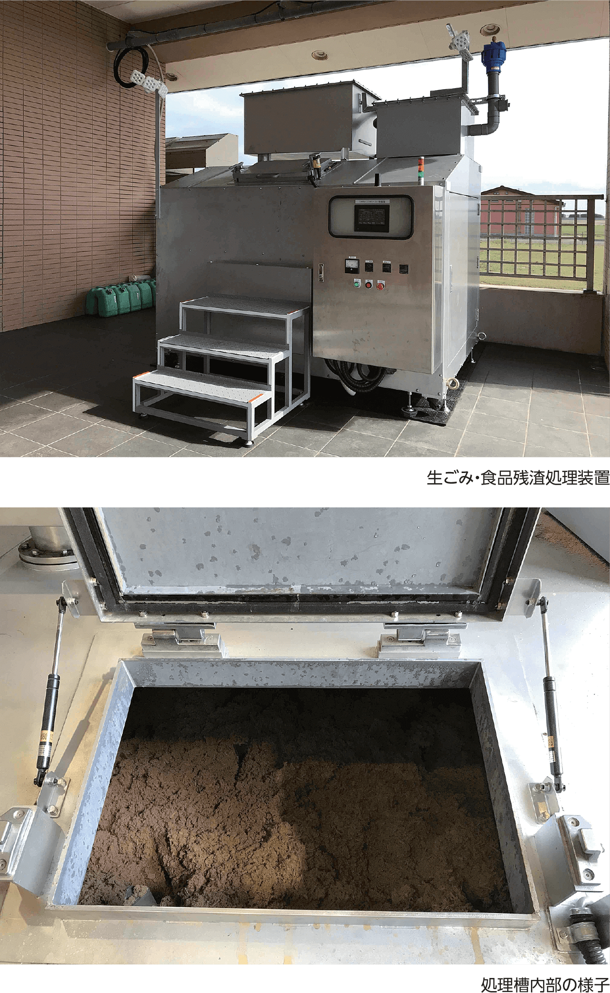 - 高い減容率なので、処理残渣は6カ月間取り出す必要がありません。