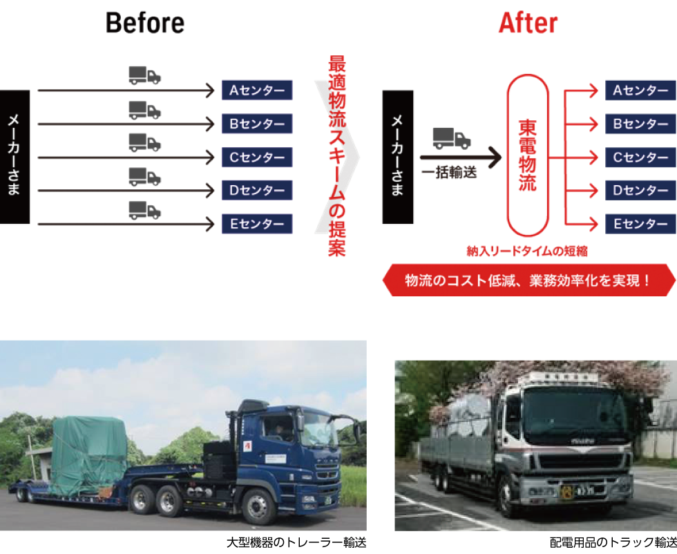 - 倉庫や輸配送ネットワークを活かした最適な物流スキームの構築により、物流コストが削減できました。