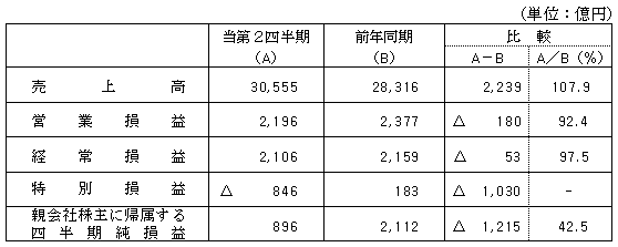 また、特別損失に原子力損害賠償費846億円を計上したことなどから、親会社株主に帰属する四半期純損益は前年同期比57.5%減の896億円の利益となりました。