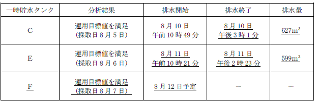 ・地下水(1~4号機護岸、H4・H6タンクエリア周辺、地下貯水槽周辺、地下水バイパス)、排水路、海水(港湾内、港湾外、1~4号機取水口内)、魚介類、海藻類等の分析結果は、至近の分析値と比較して有意な変動なし。