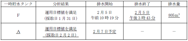 ・地下水(1~4号機護岸、H4・H6タンクエリア周辺、地下貯水槽周辺、地下水バイパス)、排水路、海水(港湾内、港湾外、1~4号機取水口内)、魚介類、海藻類等の分析結果は、至近の分析値と比較して有意な変動なし。