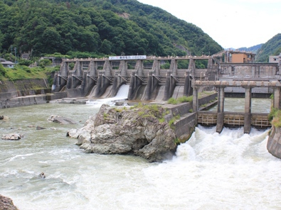 「セメント王」、「日本の臨海工業地帯開発の父」と称された、浅野セメント(現:太平洋セメント)、浅野造船所(現:JFEエンジニアリング)の設立者 浅野総一郎が陣頭指揮し建設しました。約1世紀経過したとは思えない外観からは、上質なコンクリートを用いたことが伺えます。日本の重力式コンクリートダムで堤頂長は6位、堤体内部に監査廊を設置する先駆けとなったダムです。