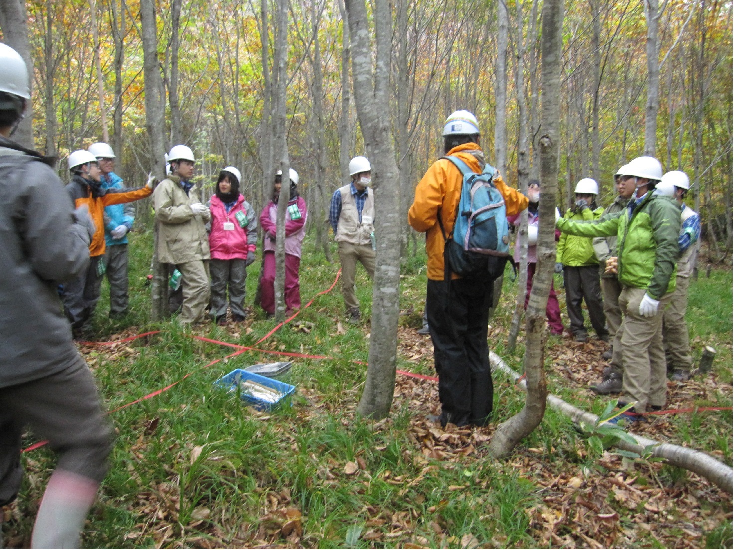 間伐を実施した場所は、群馬県片品村の水源かん養機能を有する「尾瀬戸倉の森」の一部で、ブナ植林ボランティアの企画により植林された場所です。ブナ植林ボランティアは、林業として植えられた針葉樹のカラマツに代わり、本来の森の姿を取り戻すためブナ等の広葉樹を植林する活動で、当時の尾瀬高校の生徒のみなさんも植林に参加していました。