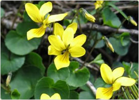 高山、草地、岩場などに広く分布していて至仏山では山頂付近に見られます。スミレの仲間では珍しい黄色の花をつけ、葉の形が馬のひづめに似ているところからこの名前がつきました。草の丈は5~15センチ、花の直径は1センチ程です。
